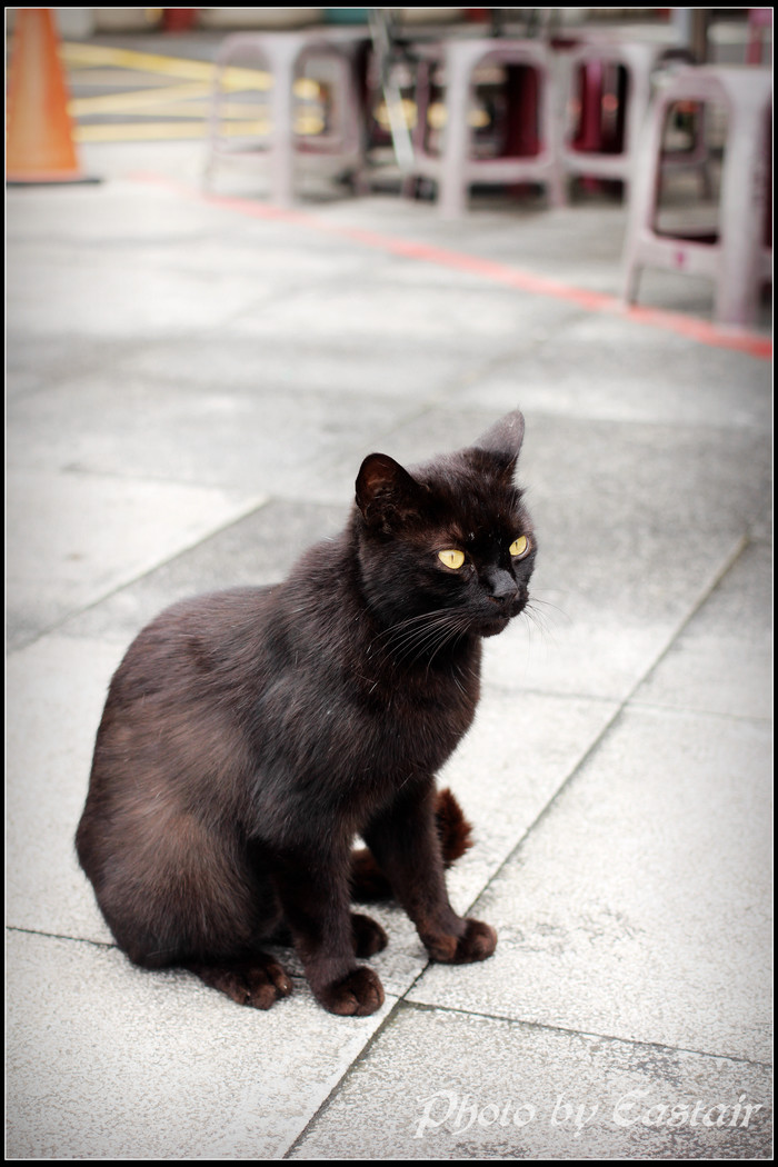我要在天黑之前,赶到九份去,因为我连九份的住宿都还没订,你要问为什么,还不是因为猫咯,有朋友之前去九份,住了一家养了很多猫的民宿,我也希望我能入住,皇天不负有心人,我也确实入住了那里,从猴硐带回来的猫粮,这里的猫很爱吃,看着就开心,哈哈。PS,这只趴在门口的狗,也很爱吃猫粮。。。