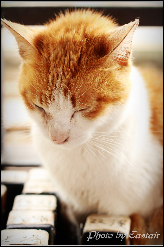 由于有火车进站,它被吵醒过一次,看着进站的火车,眼神就像期盼着什么东西一样,这是我整个台湾行最喜欢的一张照片,这个睡着的大头,你是否也想摸一摸?哈哈~