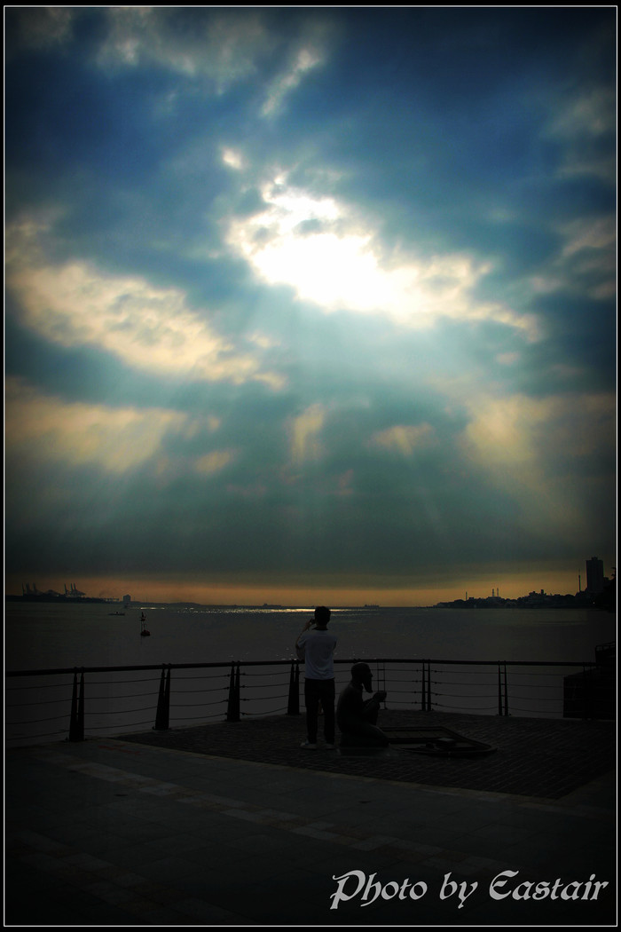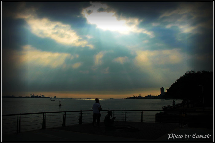 在海滨公园里遇到了耶稣光,很想拍下来,很可惜技术有限,拍出来还是有点发白,通过后期的努力,才调出以下两张照片来,大家就将就看看吧,哈哈