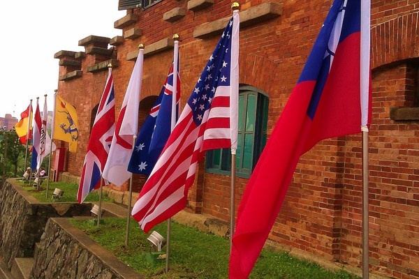 淡水红毛城,1628年西班牙人初建,1644年由荷兰人重建,1867后被英国政府长期租用,作为英国领事办公场所,直到1980年,这里的产权才回归到台湾当局所有,这是台湾的一级文物古迹,而在红毛城的古堡旁边,飘扬着9面旗帜,代表着管理过红毛城的9个不同的政权,这也见证了台湾的历史发展。