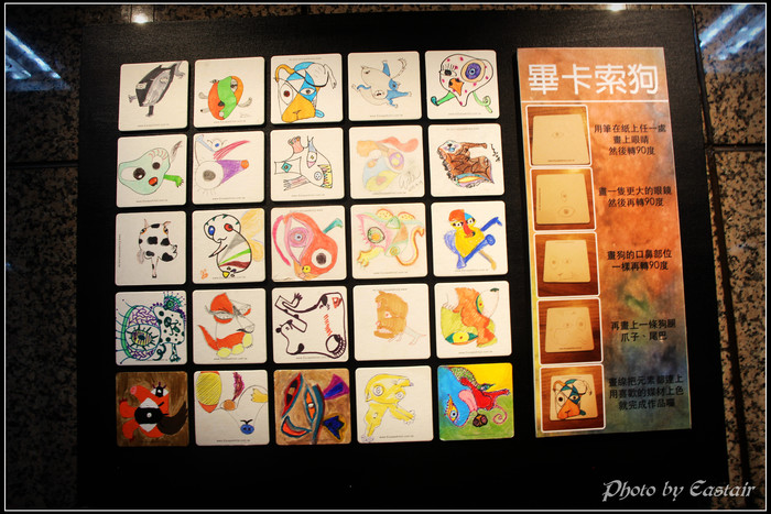从微热山丘出来后,提着这些凤梨酥,还挺沉的,本来还打算直接骑回西门,还是算了,骑到小巨蛋就还了自行车,去坐捷运去了,台北的捷运每个站都很有特色,有些站还会用画册,和你说说故事,和你探讨爱情是什么,而有的车站,则会展示一些绘画作品,以下这一张,我忘记是在哪个捷运站拍的了,是小学生画的,毕加索风格的狗,果然够抽象。。。
