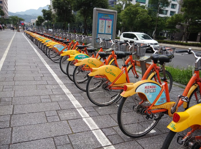 休息了好久,总算头没那么晕了,但101也没有兴趣再上了,于是,计划步行前往国父纪念馆,因为也不算太远,但就在101旁边,我看到了微笑U Bike的停车场,也是抱着试一试的心态过去看看,通过自助操作屏,我居然也成功把我的悠游卡开通了微笑U Bike的会员,可以租用自行车了,不用走路,挺好~