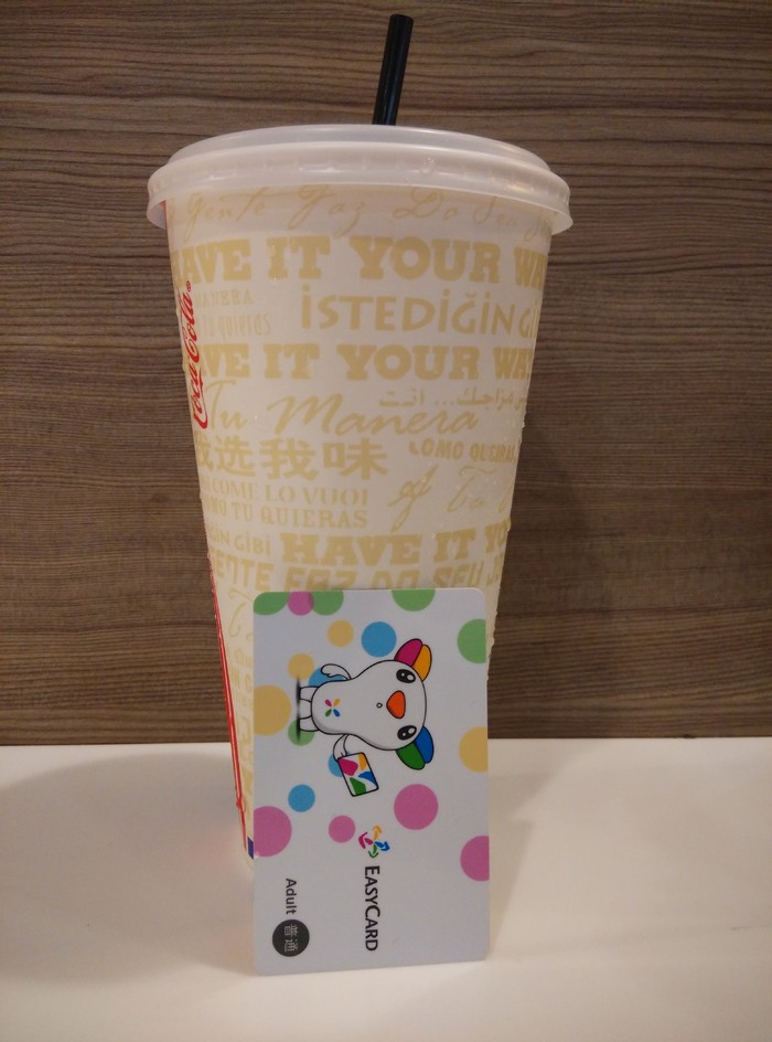 到达第一航厦后,先去找地方填饱肚子,到航厦楼下的美食广场去吃了顿汉堡王,这杯可乐,是真心的大呀,就算没吃薯条汉堡,灌了这杯可乐就饱了,那张悠游卡是和身份证一样大小的