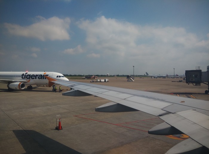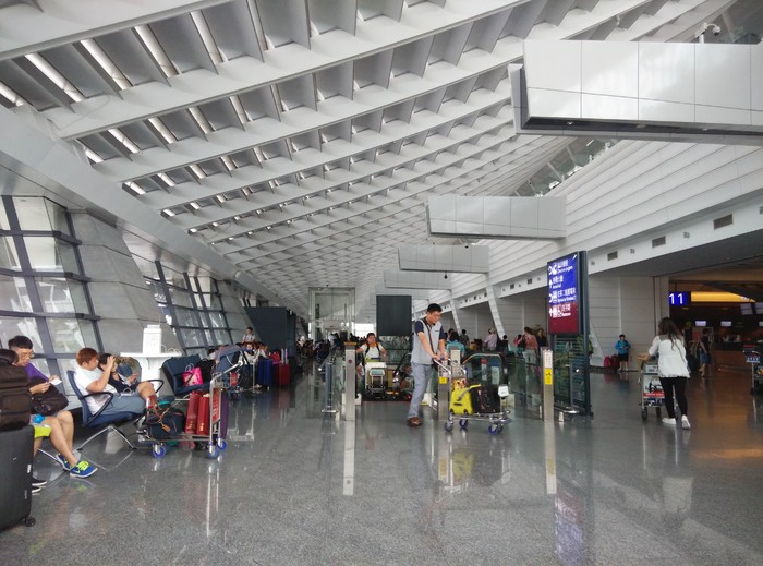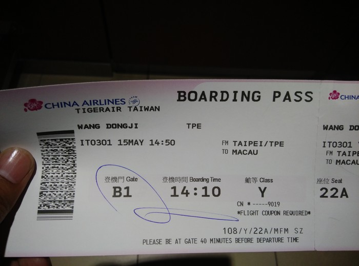 去值机也发生了点小插曲,我订的票是台湾虎航,而台湾虎航90%的股份属于台湾中华航空,所以,台湾虎航的值机都是用的中华航空的登机牌,是中华航空的工作人员,可我一开始不知道啊,我傻傻的,航班信息屏也没看,看见12号柜台的虎航就跑去排队,排到我才发现,那是新加坡虎航,我必须跑到2号柜台的台湾虎航去值机,疯了,跑好远。辛辛苦苦跑过来后,办理值机,工作人员告诉我,我订票上的名字打少了一个字母,我居然也犯这种低级错误,他还吓唬我,说我这种需要改名的可能要另外收费,我又推着行李狂奔至10号柜台旁边的中华航空服务台更正,好在我只是漏了一个字母,无需另外付费,成功更改后,我又得风风火火得跑回2号柜台才成功办理了值机,本来规定行李是10公斤的,我的行李一过称,10.6公斤,好在工作人员看我跑得这么辛苦,也放了我一马,不用再整理行李。。