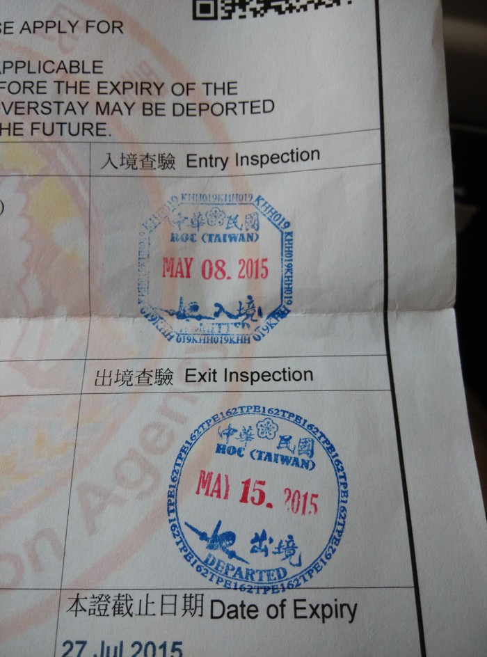 在外面候着也没啥意思了,就进去候机室里候着,出境时拿回这张盖了两个印章的入台证,这次旅途就真的算是告一段落了,等待返程