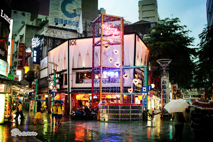 晚上就去逛了西门町,一晚上都在下雨,作为游客,却觉得蛮有情调