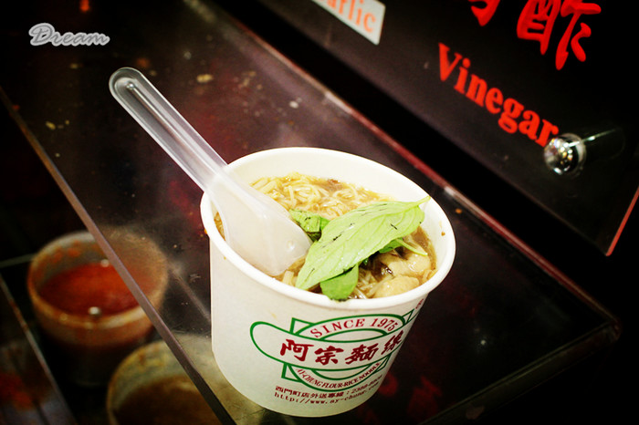 有点饿了,我们决定去西门町里寻找<阿宗面线>,雨天整条街都没什么人,就阿宗面线门口都是人,运气好,不用排队,记得一定要加辣,他家的辣非常好吃