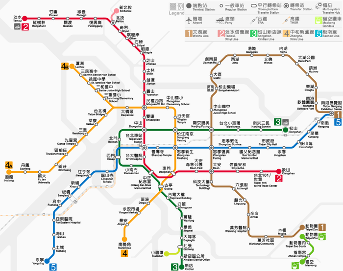 可惜我初来乍到,有点兴奋有点紧张,从百度上下载了张错误的台北地铁图(概念图),上面标明桃园机场有捷运,而我又把捷运和高铁混在了一起,莫名乘上了开往桃园高铁站的巴士,从桃园高铁站坐高铁到了台北火车站,真是一步错步步错啊,再次必须贴上捷运图,不能误了大家