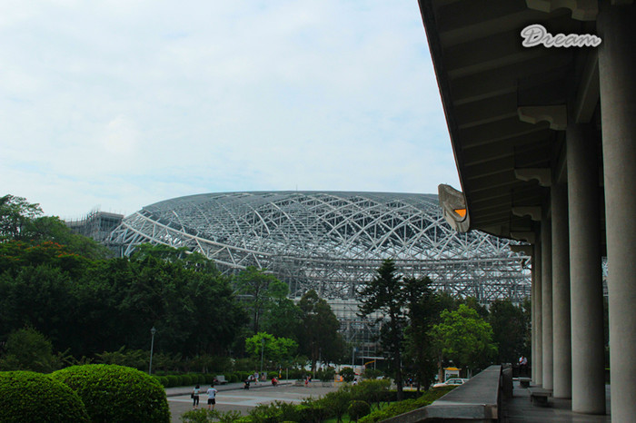 从<东门> 站坐到 <国父纪念馆> 站,出站对面就是台北正在造的大巨蛋