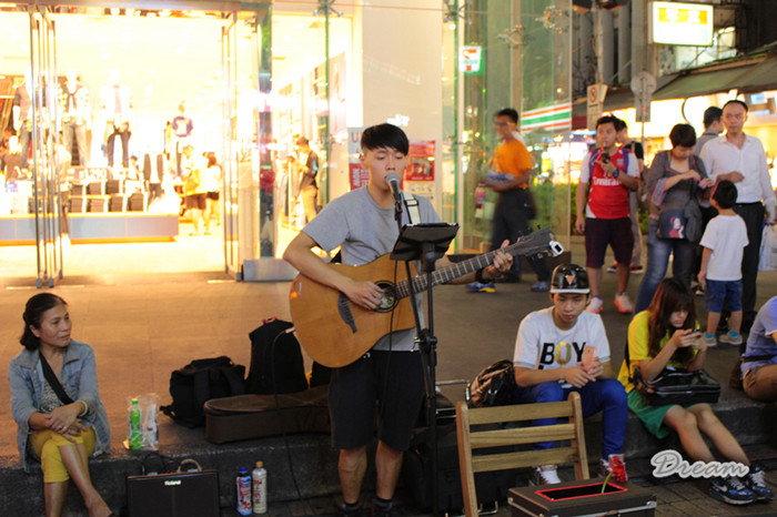 吃到撑,消化散步的时候看到一帅小伙在唱歌,好听