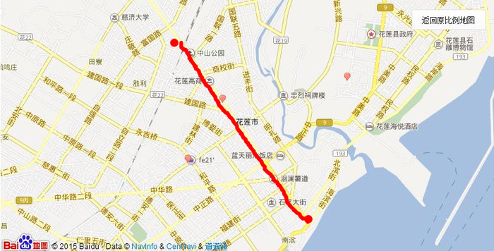 老板拿着花莲的观光地图给我们介绍应该去哪里逛逛,于是我们决定借用民宿的脚踏车沿着中山路一直骑到海边,看着很远,其实一会就到,花莲县真的很小