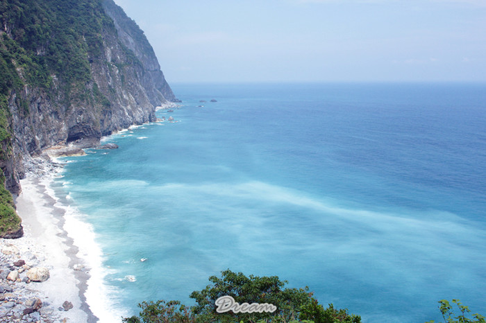 沿着苏花公路(苏澳--花莲)一直向北开,就到了清水断崖,蔚蓝的太平洋冲击着悬崖峭壁,海浪在沙滩上留下一片乳白地带,询问老板为什么会这样,老板说这就是海水冲刷鹅卵石后产生的颜色.....