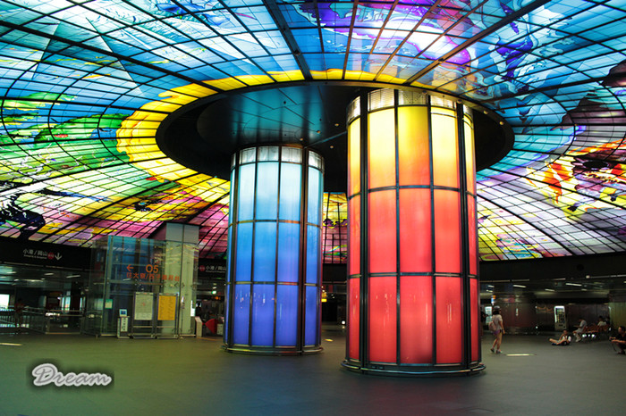 我们已经买了到高雄之眼摩天轮的捷运票,但经过 <美丽岛> 站时,还是决定出站去看一下高雄著名的最美大厅 <光之穹顶>