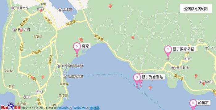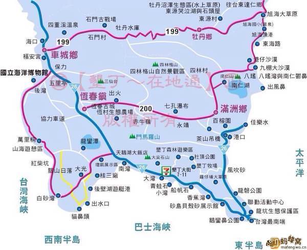 出垦丁大街开往南湾路,到达南光路路口看到7-11左转,然后会有指示牌,一直开往后壁湖渔港