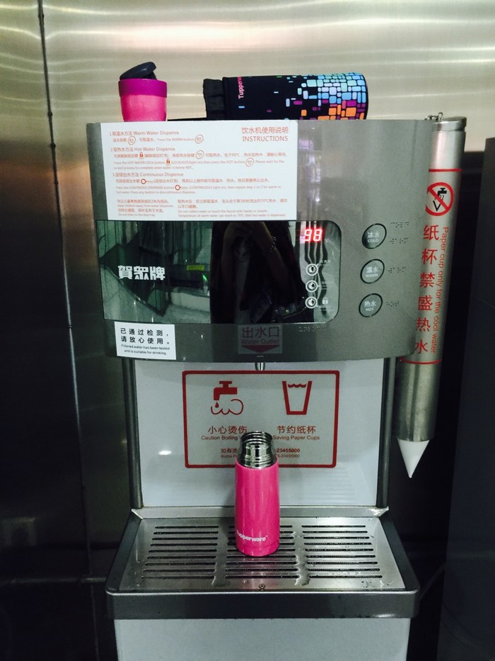 感冒的人儿出门在外有口热水喝也是热泪盈眶。话说深圳机场的这个饮水机很人性化。能满足乘客的各种饮水需求。开水、温水、冰水一应俱全!而且开水是锁定的,需要按解锁键才会出水,很安全。
