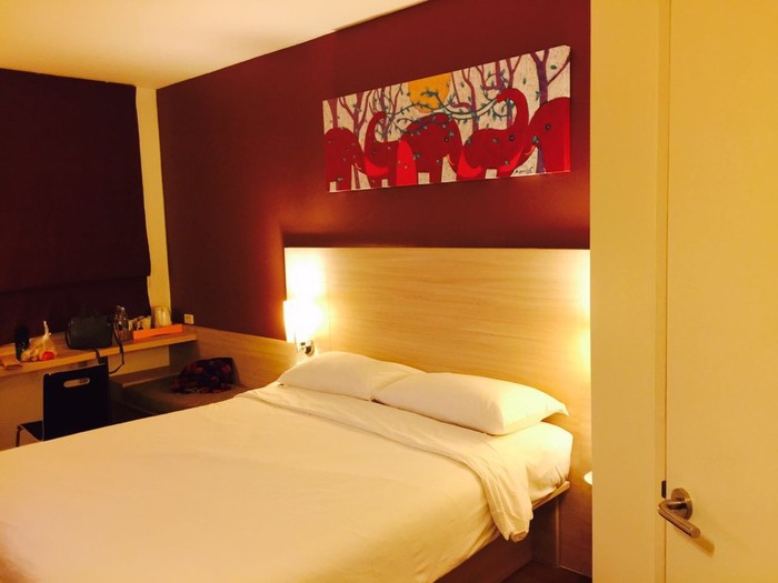 曼谷的夜晚和白天一样闷热。可能我们到的晚吧,感觉堵城似乎也不怎么堵。司机一路飙车,很快就到我们住的酒店了。司机很热情的帮我们拿行李,给了5元人民币,他很有礼貌的双手接了过去并谢谢我们。很真诚。曼谷的住宿我们定在了MBK旁的ibis(宜必思),对于预算不多的朋友们很推荐!!!地理位置优越,连锁酒店,干净整洁。门口就是BTS,马路对面就是MBK。步行去CW和Paragon只需要5-10分钟。在这补充一句,大家来这边真的别带那么多洗漱用品,7-11里应有尽有,24小时营业,很方便的。而且泰国的7-11真的用漫山遍野都是!走两步就有一家的节奏。我们住的宜必思一楼就有一家。之前在中国银行换的都是千元大钞,checkin之前买了点吃的喝的把钱换开。