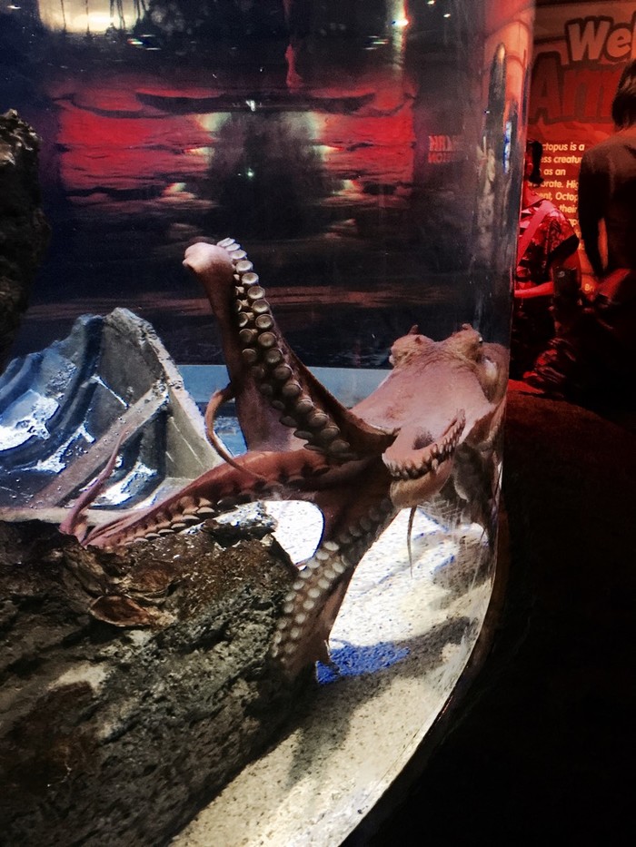 这是最有代表性的一张。走走停停,一个多小时也就逛完了,感觉没上海的海洋馆大。每天固定时间段有表演,喂食,潜水,小话剧什么的,对于没去过的朋友们来说还是值回票价。从海洋馆出来我快要冻僵了(此处有咳嗽声…)赶紧找地方喝杯热的。