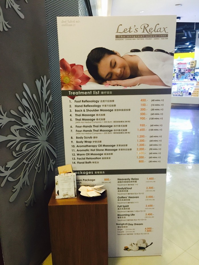 T21每一层都被设计成航站楼的样子,有很多小店,很好逛。Food→Shopping→Massage一条龙!女生们应该都对泰国买内衣很便宜有所耳闻吧?泰国大型的Shoppingmall里面几乎都有内衣打折促销的花车。「战利品之一」一套ELLE的内衣(有配套的小内内喔),背后是白色蕾丝,超美的款式,也很舒服。国内起码要四五百的,这里折后140rmb!!!有需要的女生们不要错过喔~