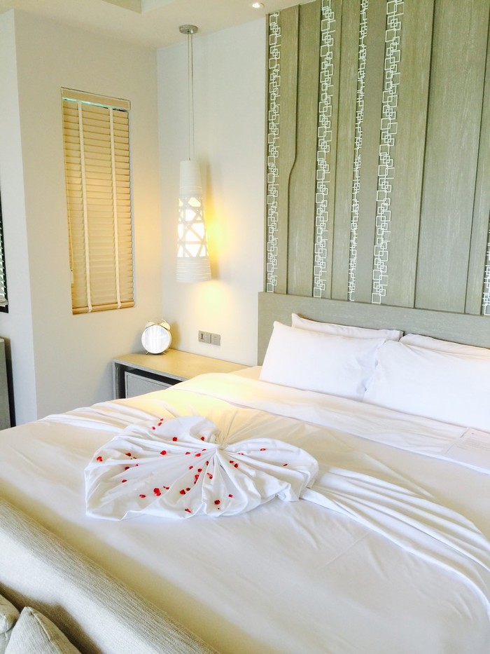 今天普吉阴天,刚坐上车就暴雨如注…岛上的公路基本都是山路,各种蜿蜒崎岖,晕车的同学最好准备晕车药。我们在普吉的行程长达10天,前几天定了Pullman(本次蜜月最豪华的住宿hiahia)全称:阿卡狄亚奈通海滩铂尔曼酒店,感兴趣的朋友可以在艺龙上预定,价格很好的。选择住在这里绝对旅途是最美好的回忆!!!酒店建在山上,有车免费接送客人,不论你从房间到lobby,还是从山下回房间都可以,超方便!世界连锁的高级酒店,硬件和服务自然也都是超一流。check in的时候前台接待跟我说因为是提前预定的,房间已经帮我们免费升级,升级后的房间更宽敞舒适。之后简单介绍了一下酒店的设施和服务:酒店有两个泳池,一个建在山上的别墅区内,另一个就是我要隆重介绍的无边际泳池,位于餐厅旁,可以直接欣赏无敌海景(我和老公每天都会来,还可以夜游喔)!另设有健身房,儿童乐园等。餐厅每天的happyhour时段饮料买一送一。早餐是要额外付费的,入住时预定早餐有优惠,好像两个人800-900/天。一开始觉得有点小贵,吃了就觉得值了。不信你试!房间结构如下图所示,卫生间和浴室忘记拍了,淋浴、浴缸和卫生间是独立的。