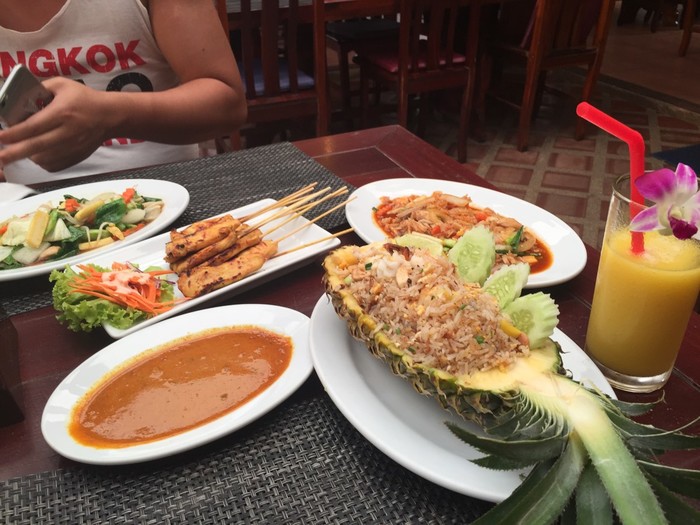沿着酒店的海滩边上有一些餐厅和马杀鸡,当然比在酒店吃要划算的多。推荐一家叫wiwan's restaurant,我有两天的晚餐都是在这家解决的。