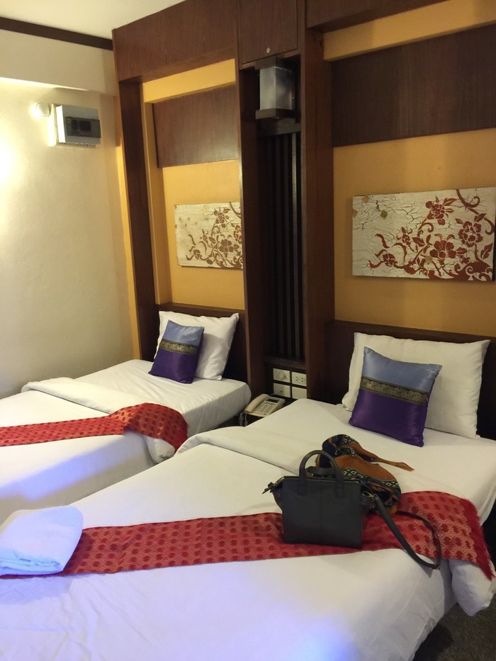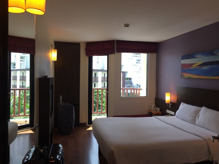 退房前一天,老公在淘宝定了车子送我们去芭东,比在当地打车过去便宜很多,路程还蛮远的,全是山路。芭东是普吉岛最热闹的海滩了,住在哪里都很便利。我依然定了经济实惠的ibis,距离海滩步行大约五分钟。房间虽然不大,但是干净舒适,有独立小阳台,适合smoker。后院有泳池,性价比还是很好的。