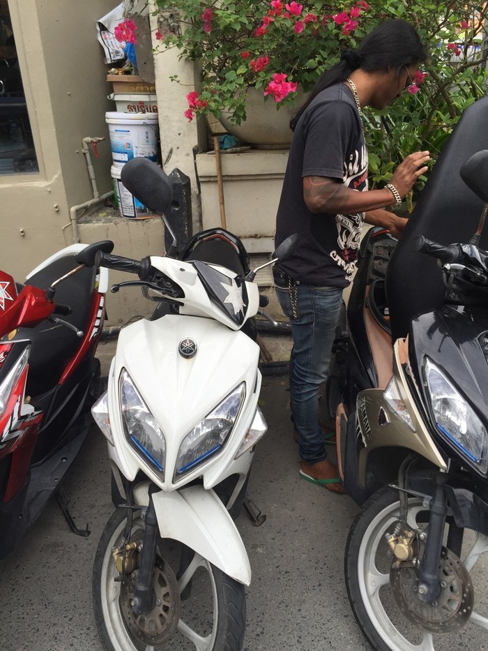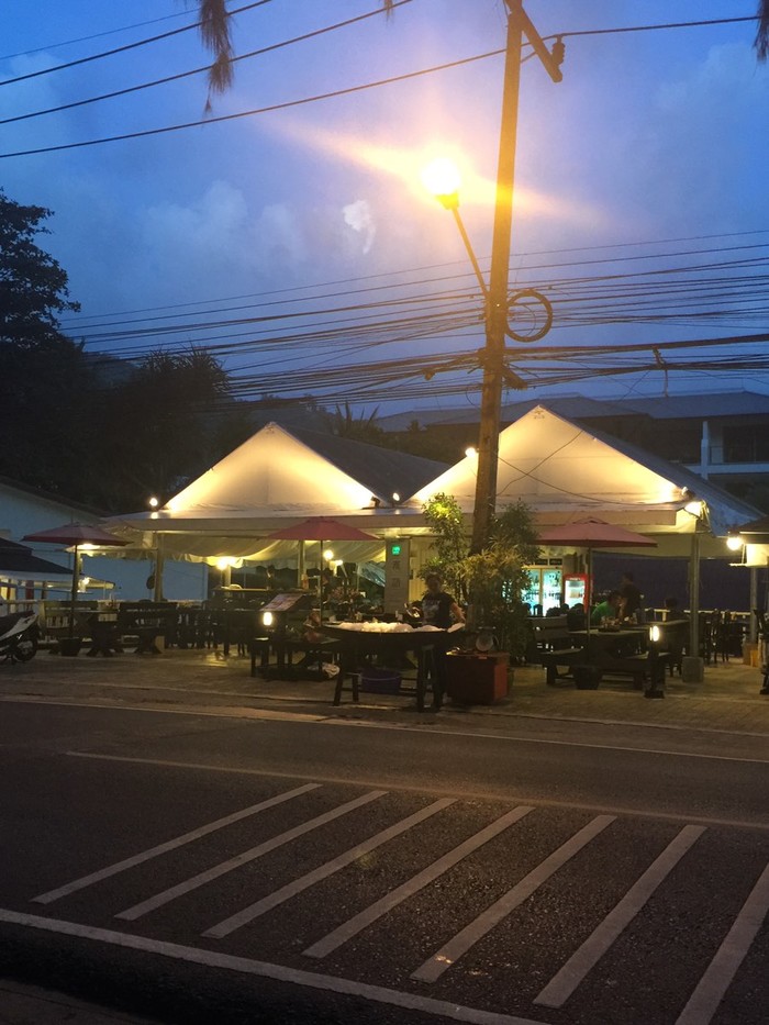 放下行李我们步行去了海边,沿街的餐厅都有会中文的妹子和小哥在招揽客人:"老板,吃了吗?里面坐=(*)"我们去了耳闻已久的savoey seafood,味道不如预期,而且服务奇差无比。不推荐。酒店出门右手边有一家 tatoo店可以租摩托车,一天300泰铢,汽油单独付费。很推荐会骑车的人租摩托车,实在是太方便了!不过一定要戴头盔小心驾驶,很多老外骑的很猛。