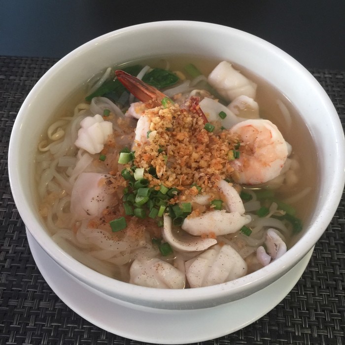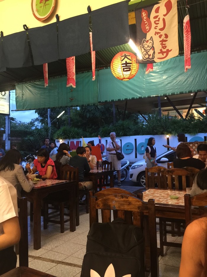 虽然虾饼和空心菜是每家泰餐都有的菜色,这家做的不赖!榴莲冰淇淋也很好吃!另外还有一家餐厅,叫什么不太记得了,大家看图吧。大约跟wiwan距离一两百米,老板是华人,我们就点了两碗面条,老板还来问我们分量够不够,味道也不错。