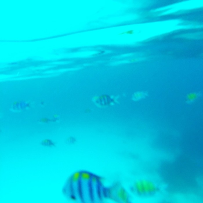 每天的行程安排的满满的。皇帝岛浮潜,早晨有车来酒店接,很快到了码头。可惜当天天气不好,阴天,海上风浪特别大,快艇坐出了过山车的感觉。我老公的胳膊应该被我捏紫了…吓死宝宝了。没吃晕车药的亲们都吐成一团,暗自庆幸 hiahia。事实证明,晕船的亲们下水之后还会继续晕水…但浮潜的时候千万忍住别在海里吐,会被鱼群包围,因为它们不挑食…