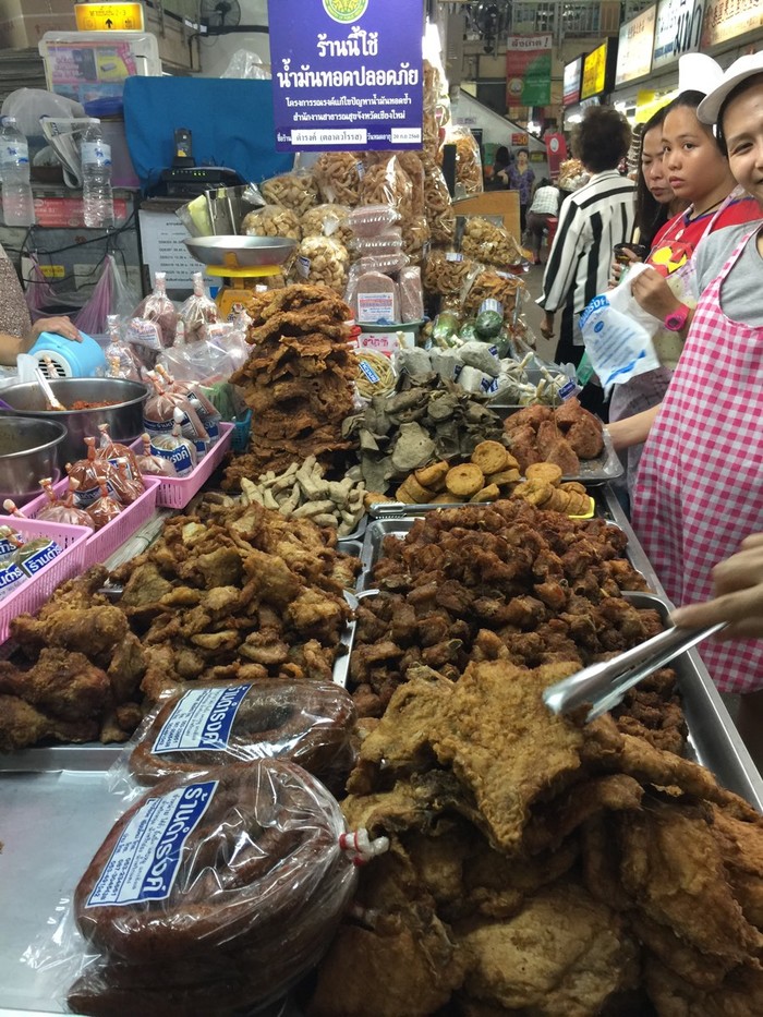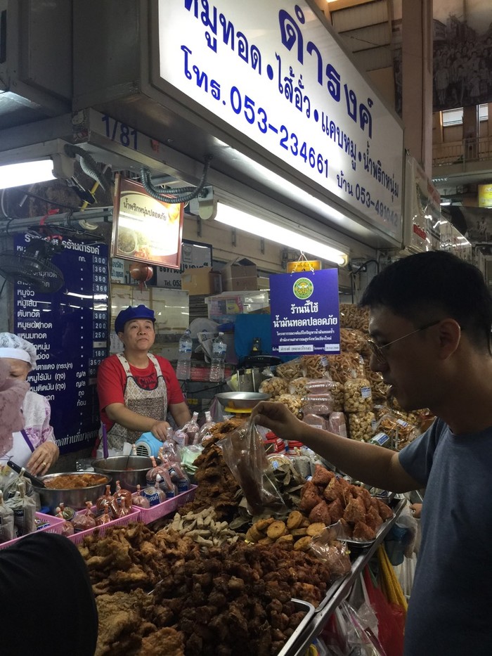 因为清迈是在泰国的最后一站,所以伴手礼基本都在这里买的。推荐去瓦洛洛市场(waroros)买吃的、化妆品,比其他地方便宜很多。市场里有一家卖炸排骨的摊位,炒好吃,当地人都去买。买些他们自己做的香肠、炸猪排,配上他家自己煮的糯米饭和辣椒酱,人间美味!!!
