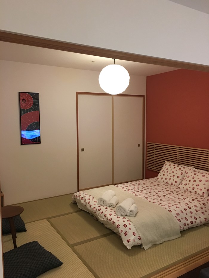 在Airbnb上一眼就看中了这家,主卧是我们常见的现代风,次卧是和室,阳台超级大。附近有7-11,罗森,超市,最近的地铁站是四天王寺前夕陽ケ丘站,步行5分钟内可到。