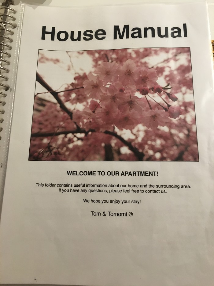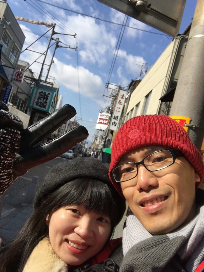 房东告诉我们应该从1号口出站,但我们以为大阪的地铁站会和香港一样,先出站再找出口,结果我们悲剧地从5号口出来了,东南西北都分不清。晚上10点的大阪街上一个行人都没有,又冷又累,只能打电话给房东求助。房东太太人超级好,这么冷还出来接我们。太匆忙了,没来得及和房东夫妇合照。房东Tom是英国人,房东太太是关西人,年纪和我们相仿。非常的热情周到,还给我们准备了不少零食和饮料,很耐心地跟我们讲解房间里各个设备的使用方法和注意事项。