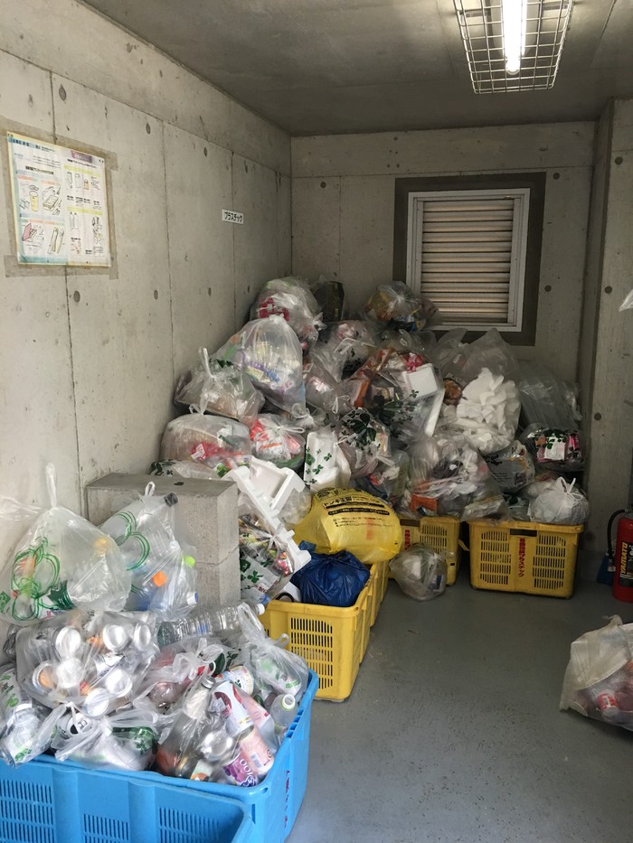 下面这几张是我们公寓的垃圾房,一点异味都没有。日本人从小就要学习如何分类垃圾,如果社区里有人垃圾分类没做好是很丢脸的事情。