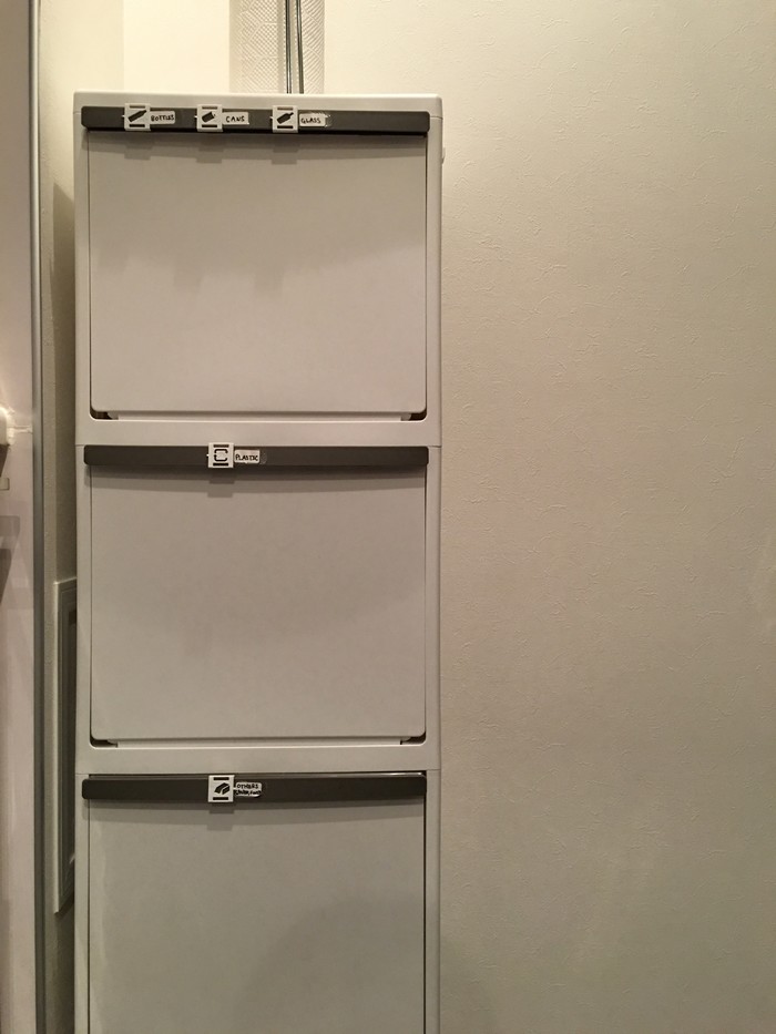 住公寓和住酒店不同的地方就是垃圾要自己分类,一开始真的有点困惑,后来我发现每样东西的包装上都标注了类别,比如纸,塑料,扔到对应的框里就可以了。