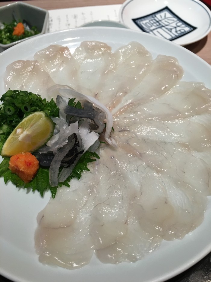 在日本被允许食用的22种河豚中,"虎河豚"被视为最高级的品种。我们点的是"玄也玄"套餐,没有错,就是最贵的那一个set。店里有台湾服务生,可以中文交流。