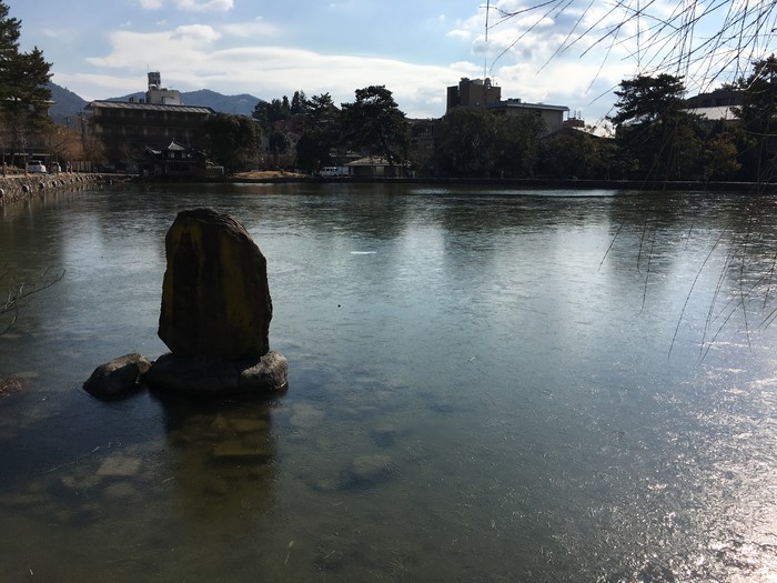 尽管出了太阳,奈良的气温还是要比大阪低一些,猿泽池都结冰了。