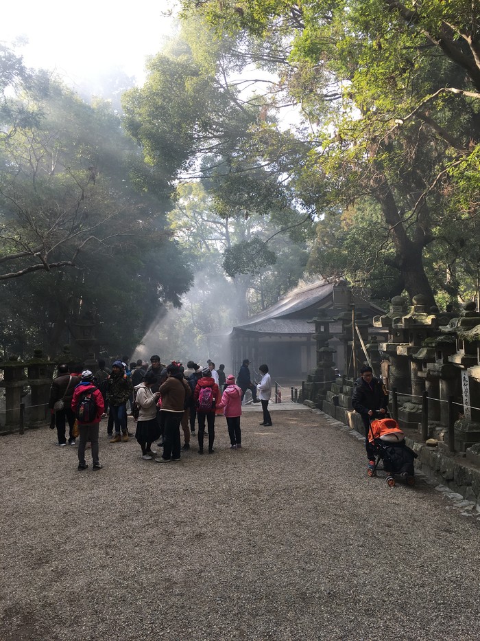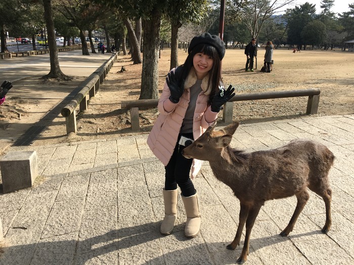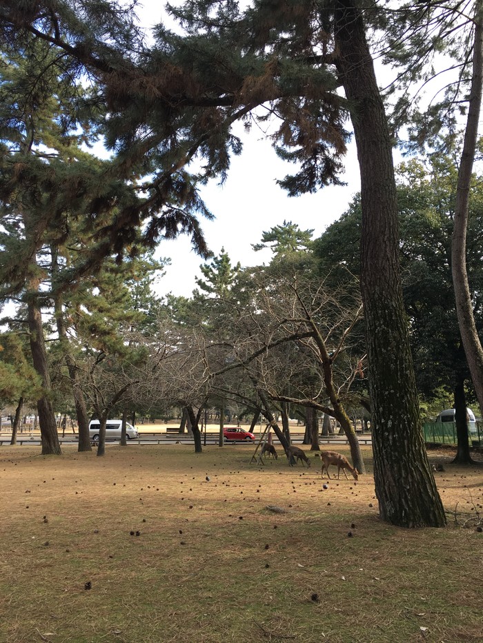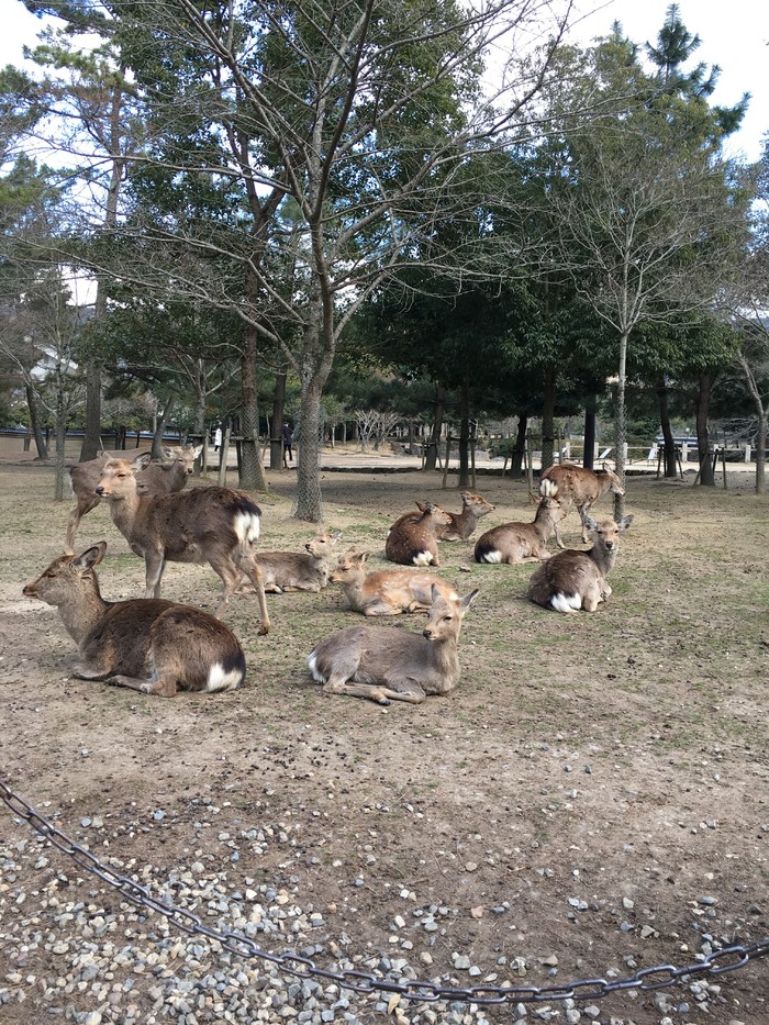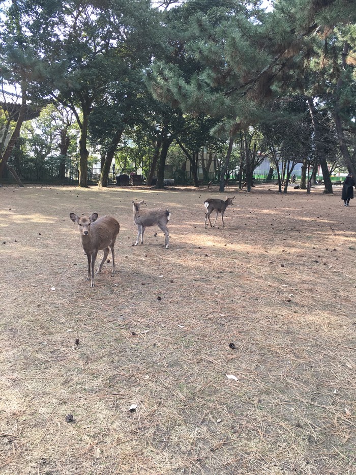 以奈良公园为中心,东大寺在左边,春日大社在右边。东大寺人山人海,我们就先去了奈良公园和春日大社。