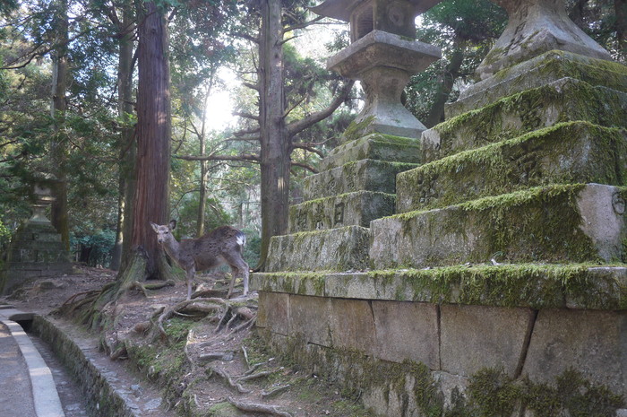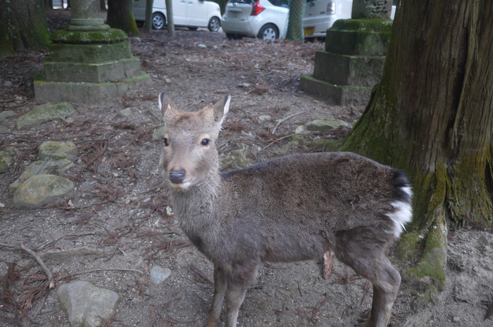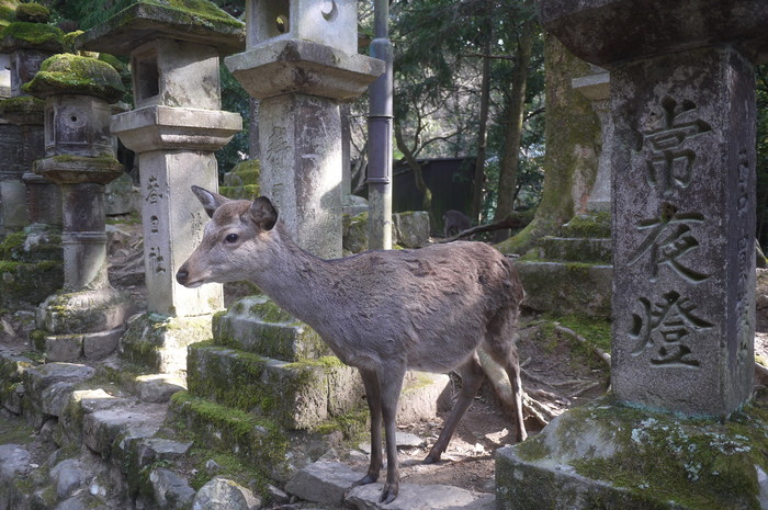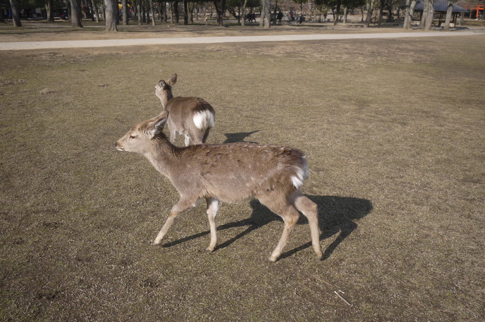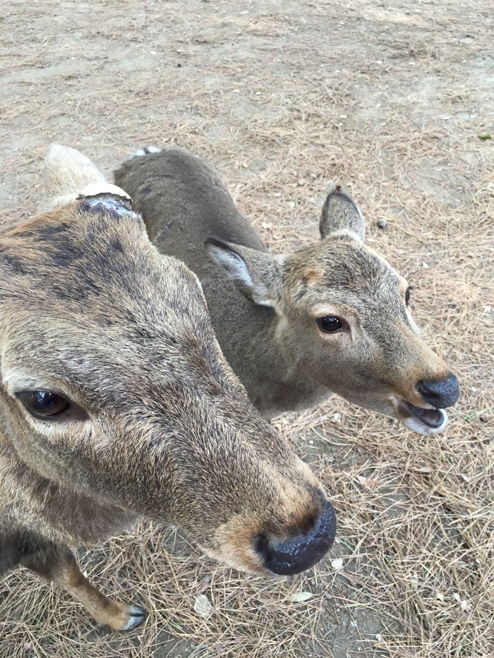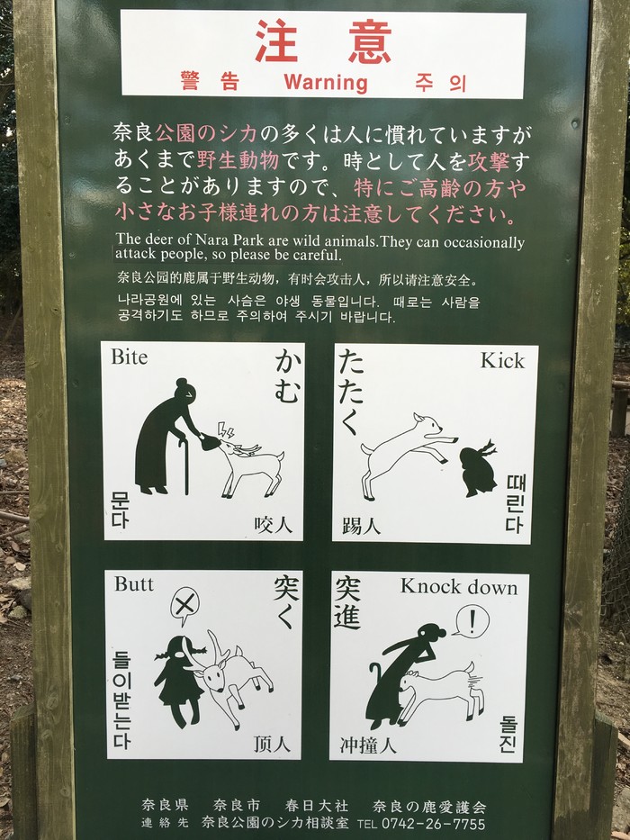吃过午饭继续往前走一小段,就到了奈良公园。奈良的鹿全是野生的,所以脾气是有一点点哒。