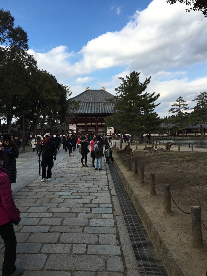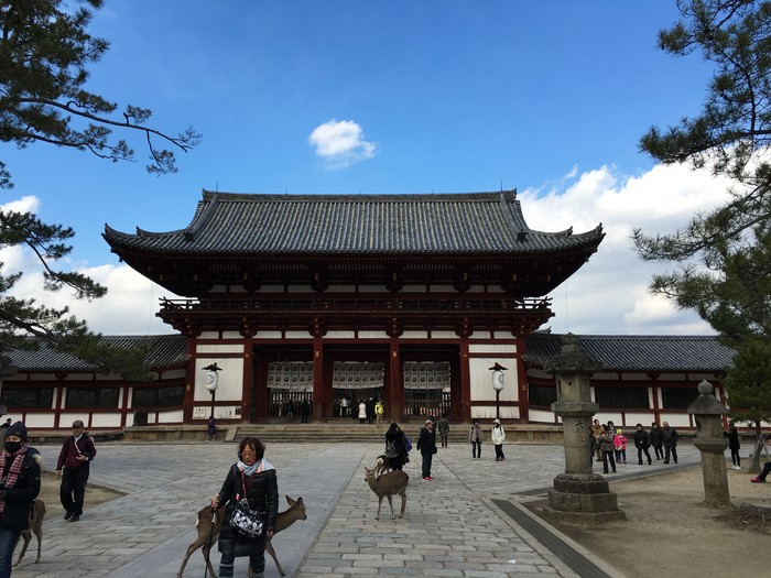 这么一个小插曲搅了我们继续游玩的兴致,往回走去东大寺。东大寺有一千二百多年的历史,唐代高僧鉴真和尚曾在这里设坛授戒。大佛殿是世界最大的木造建筑,作为古奈良历史遗迹的组成部分被被列为世界文化遗产。
