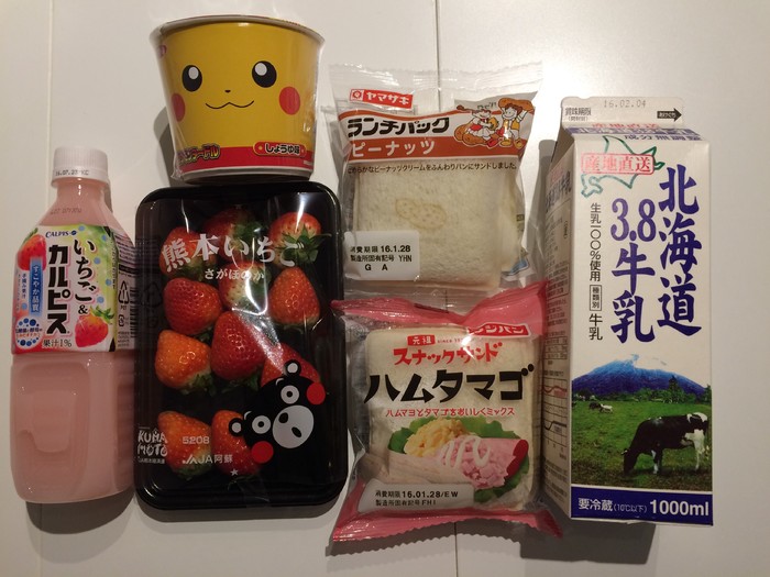 晚餐,因为下大雨,所以放弃去法善寺吃松阪牛,回到住处楼下超市买了点吃的。