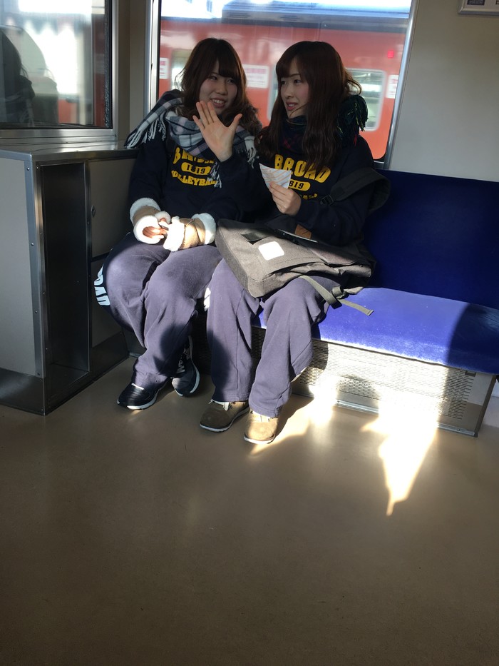 电车上的学生妹,我觉得右边的蛮漂亮,但是因为穿运动裤得到朋友圈的一众差评,肤浅[表情]
