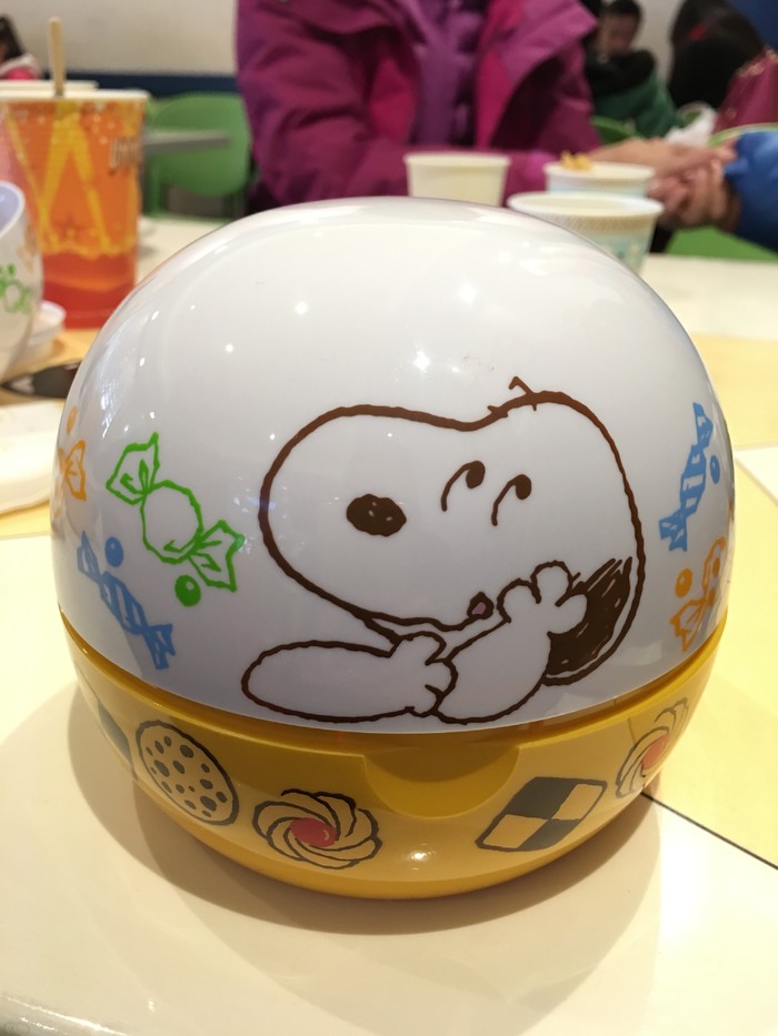 午餐在snoopy餐厅吃,这个球是用来装汉堡的,吃完可以带走。
