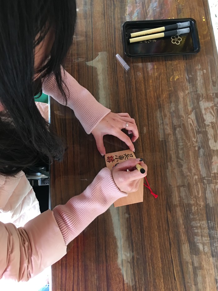 接着学日本人,投硬币到箱子里,和我们的香油钱是一个意思。摇响垂铃,二鞠躬,双手击掌两次,再鞠一躬,就算完成参拜的仪式了。