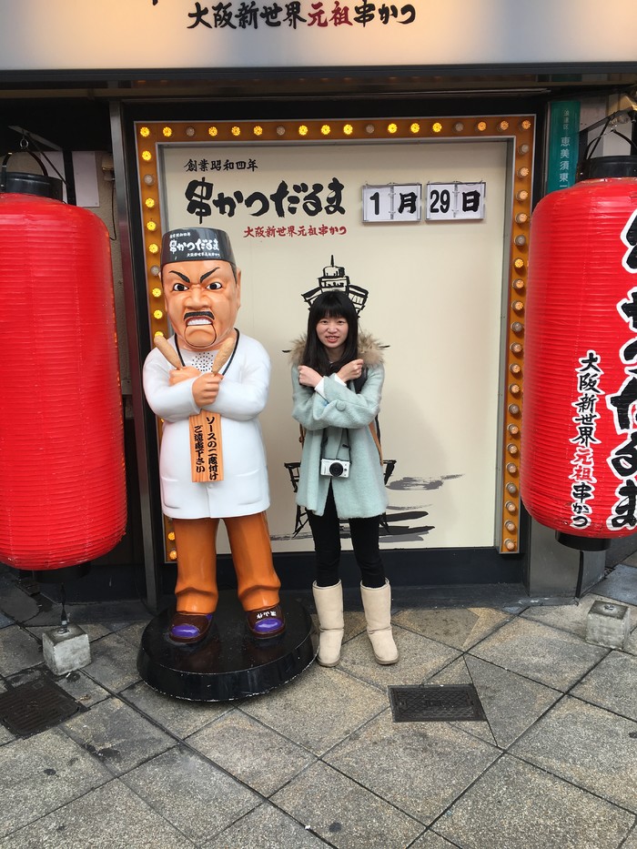 道顿崛这里有一家丹青堂,房东推荐我们在这买日本特色的纪念品。除了卖笔墨纸砚,还有很精致的工艺品,我们买了一对穿和服的小人儿送给朋友作为他们的新婚礼物,礼物被包装得很好所以照片欠奉啦。在其他花俏的店铺衬托下,这家的招牌非常不起眼,店长是位老爷爷,推荐大家去看看。