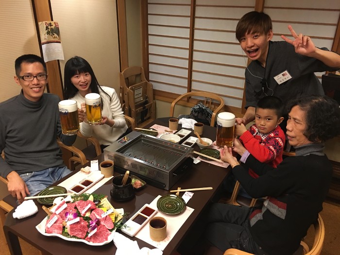 我们去的是下图右边第二家,牛なべ。建议是要预约,但是我们没有预约,五点开店,我们五点半左右到的,很幸运有位子。进店会问你想要涮涮锅还是BBQ,我们选了BBQ,就是烤肉的形式。