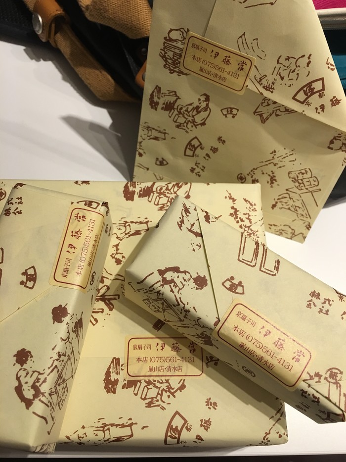 买了好多糕点,柜员很贴心的帮我们包装,拿不同颜色的缎带让我们挑。要是在中国买东西哪有服务员帮你细细包装啊,给个纸袋子就不错了。还提醒我们赏味期限很短,要尽快吃掉。全部包好之后,拿了一个纸袋子一盒一盒装进去,你以为这样就完了吗?NO!因为是下雨天,又用套在纸袋外面的塑料袋封了一层,这样就不怕雨水沾湿纸袋子了。我给日本人的服务态度折服了,请收下我的膝盖!