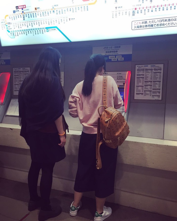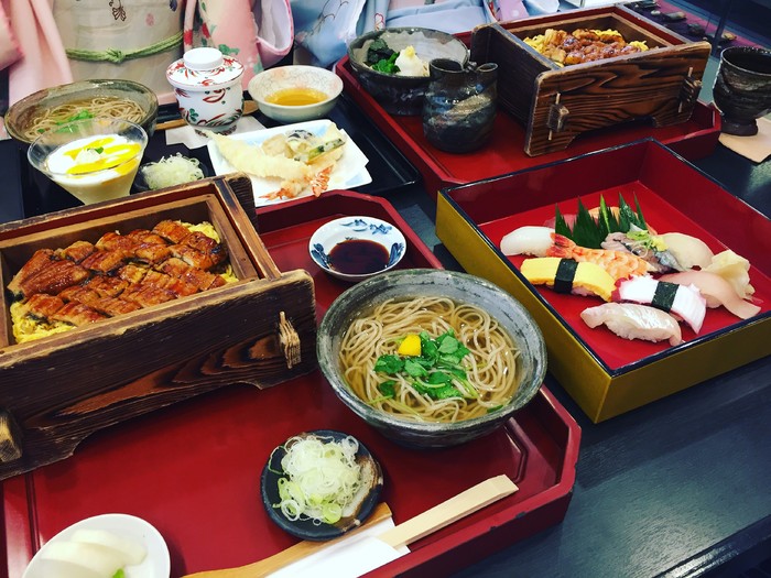 和闺蜜来一张这样的照片,真的很美好呀,少女feel爆棚,哈哈,满满的都是回忆。午饭吃了鳗鱼饭和荞麦面,味道总体还行,有懂中文的店员,交流无障碍。