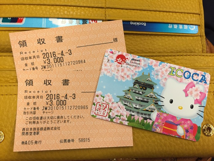 购买ICOCA&HARUKA的套票,比较便宜而且方便。套票中的HARUKA只能坐在4-6车的自由席,不能坐在其他车,有位置就可以坐,是不对号入座的。其他车的指定席是单独买票的人坐的,比较贵。基本上自由席还是能找到位置坐的。而这个hello kitty的ICOCA用起来也很方便,就相当于交通卡,但是与巴士一日券或者周游券不同,储值卡不能在一日内无限次搭乘巴士、电车等。ICOCA是搭一次算一次钱的,用这个卡不用去自助售票机上选择路线,进出站直接刷卡就可以了。另外,ICOCA在关西机场免税商店,和关西地区的一部分便利店和自助贩卖机都可以刷卡使用。离开时候也可以退卡,不过我卡里的钱用的差不多了,就没去退,还可以留作纪念。)这个套票包括一张HARUKA的自由席车票和ICOCA储值卡(内含2000日元,其中500日元是押金,1500日元可使用)。
