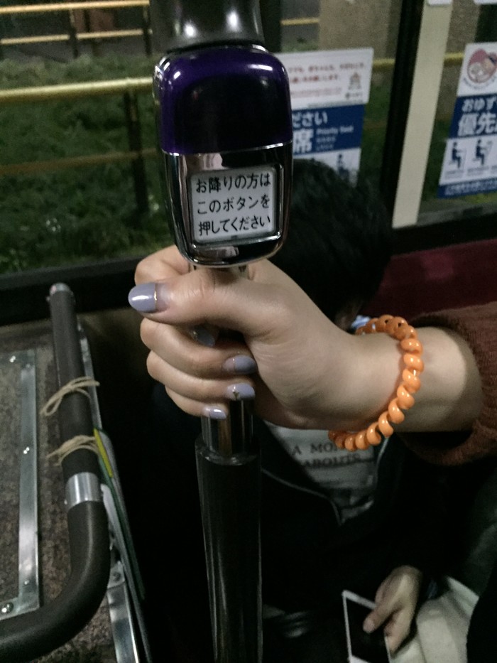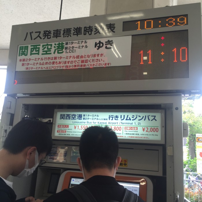 由于都是女生,带着重重的行李搭地铁实在是很不方便,日本的地铁口还大多没有电梯,所以我们选择不搭地铁。首先我们步行到公交站,搭了公交车到达了大阪喜来登都酒店,然后搭上了直达机场的巴士。搭上巴士的那一刻终于安心了。