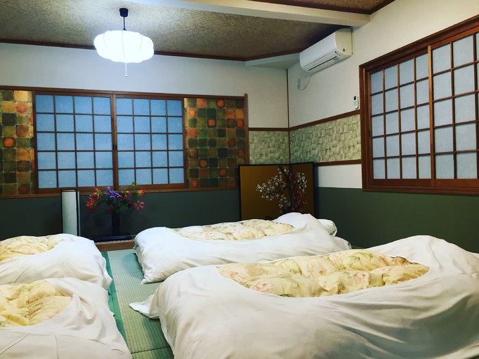 特意在京都选择了特色的榻榻米入住,入住的酒店是京都祗园佐野旅馆,旅馆内有好多只金毛,非常友善。到达的时候已经有些晚了,店家还为我们贴心地准备了点心和水果。