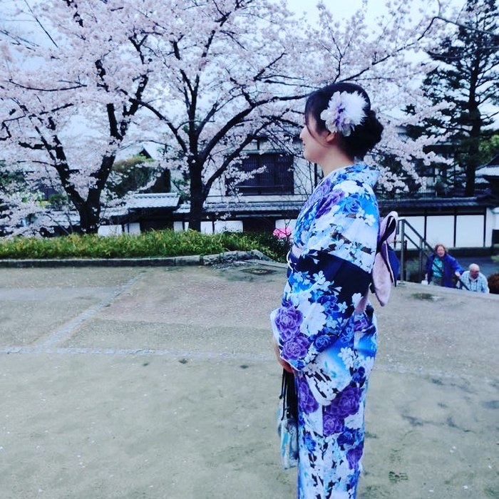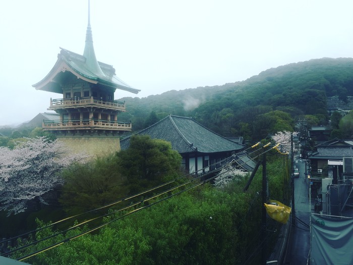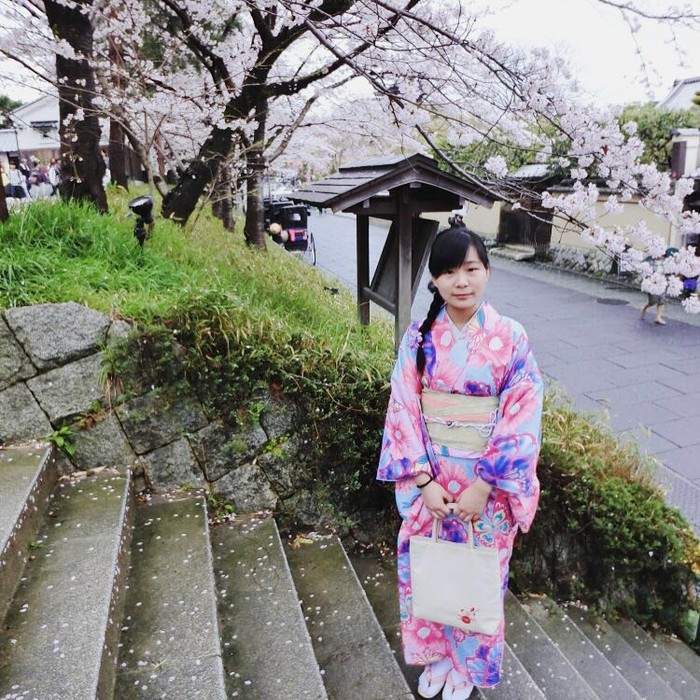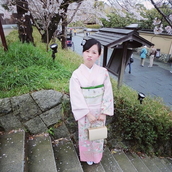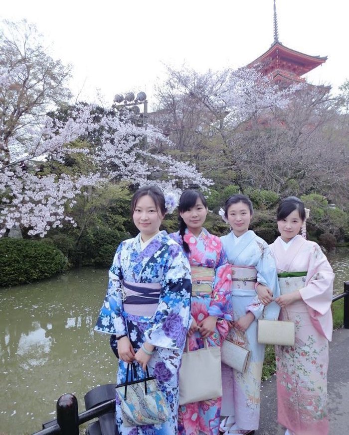 D2(2016年4月4日) 高台寺、清水寺、二年坂、三年坂在国内就预约好了和服,到了那拿出预约单就可以挑选自己喜欢的和服、腰带、拎包啥的了,还可以做卡哇伊的发型。虽然从当天的情况看,不预约也是可以的。我们定的和服店就在高台寺附近,穿好衣服我们就在门口拍起来啦。